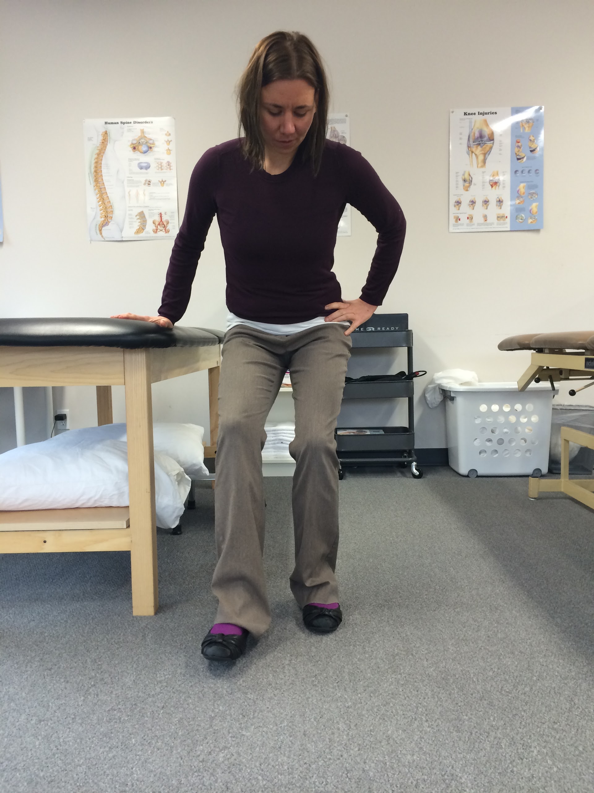 Single Leg Squats: Squat down on one leg (using opposite hand on furniture for balance). Make sure not to let knee collapse inward, or let opposite hip drop down.