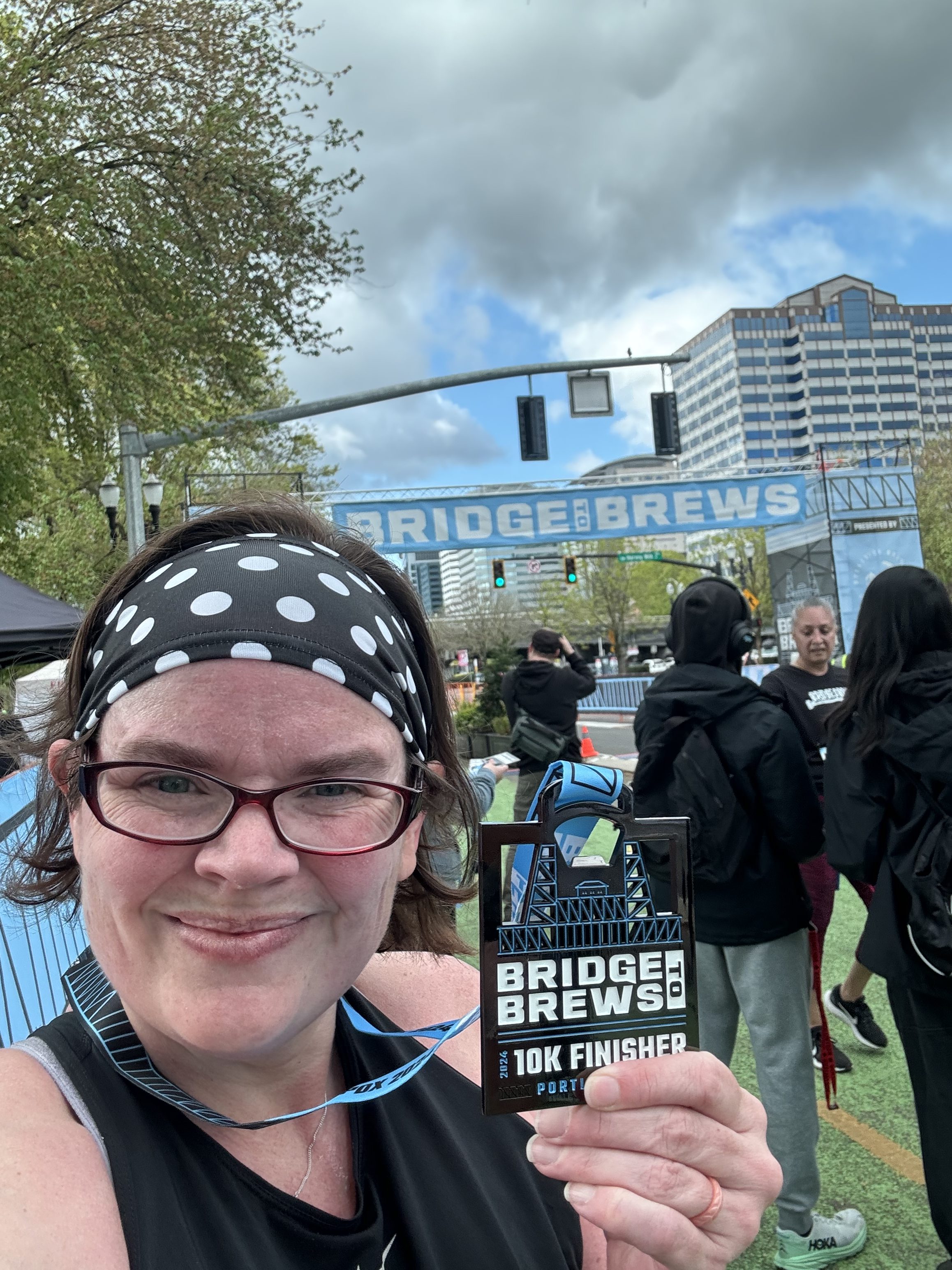 I’ve gotten to participate in Bridge to Brews a few times, with the course changing each time. This time the start and end was at Waterfront Park, which meant plenty of space for pre-race stretching and post-race celebrating. The 8K and 10K races started together at 8:50am. It was nice to have a later start that meant a reasonable alarm clock time and still margin to get my bib race morning.