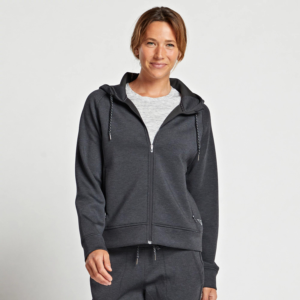 The Metropolitan Hoodie arrived in “heather black,” which is the perfect charcoal shade to wear with absolutely everything. There are side pockets with zippers, and they are large enough to fit your phone or just about any other small item you might need.