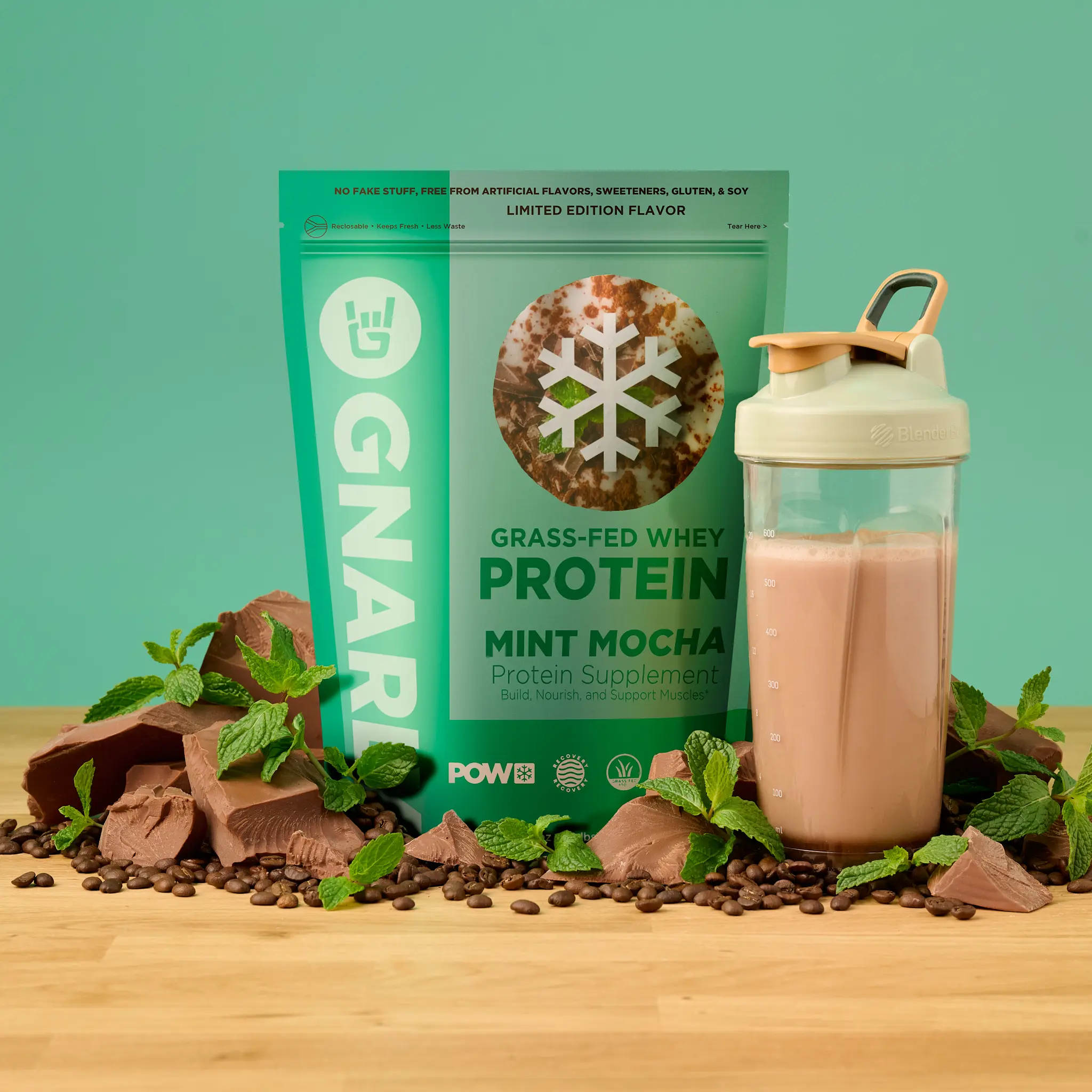 But while I don’t exactly need help indulging, it’s always nice when these flavors come together for something that’s actually good for you—and in this case, also good for the planet. Gnarly Nutrition’s new Protect Our Winters x Gnarly Mint Mocha Whey manages both.